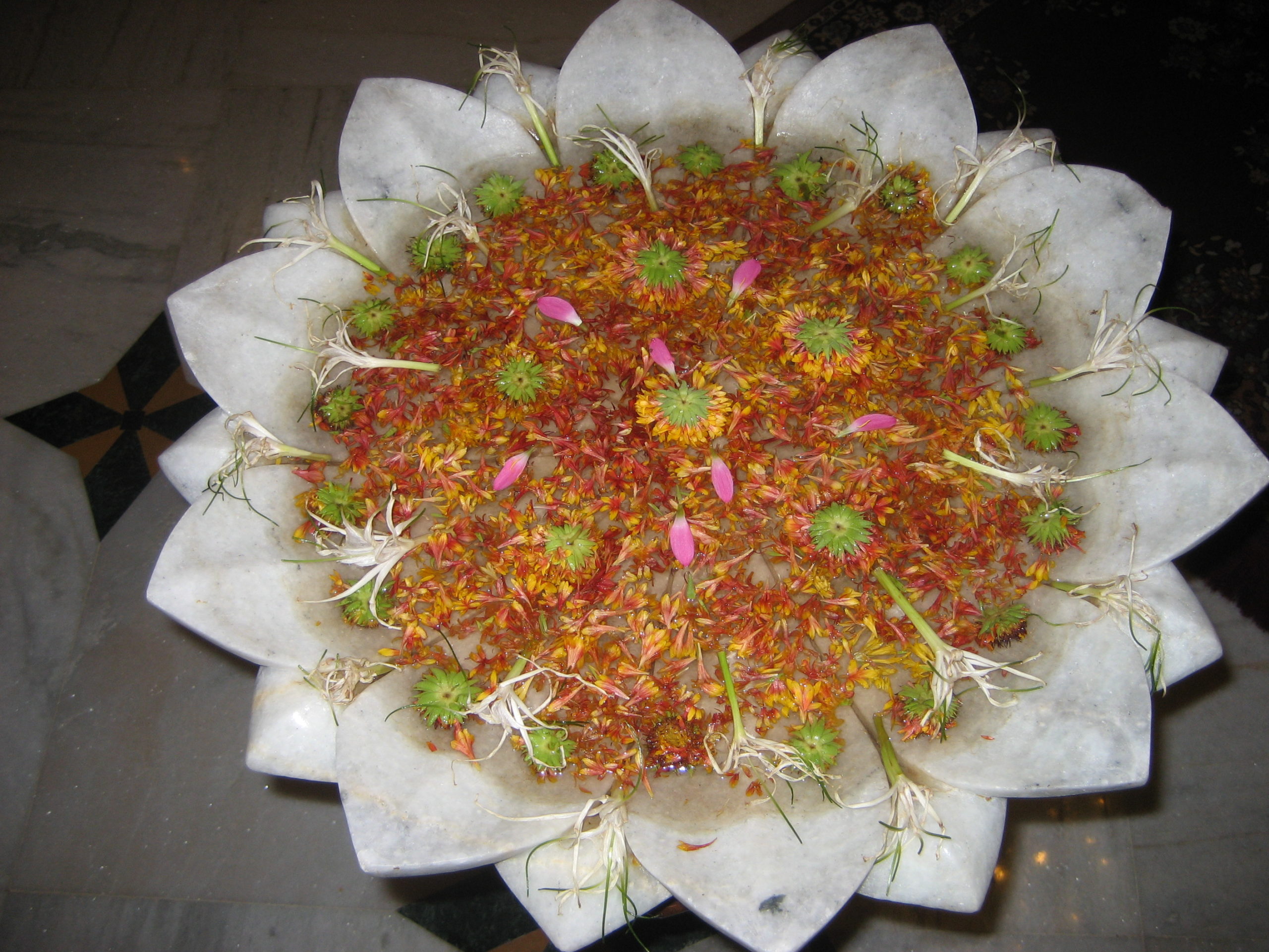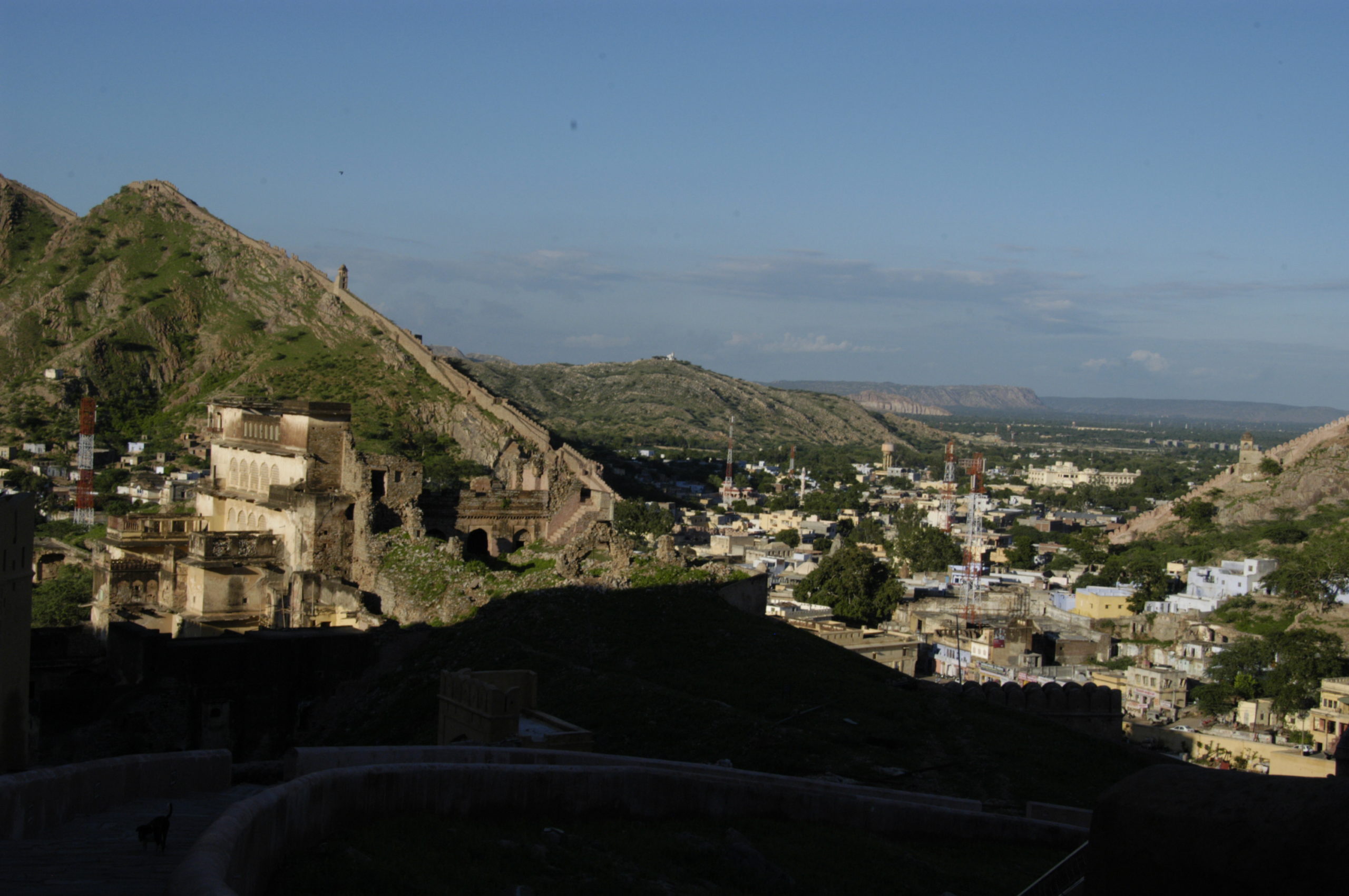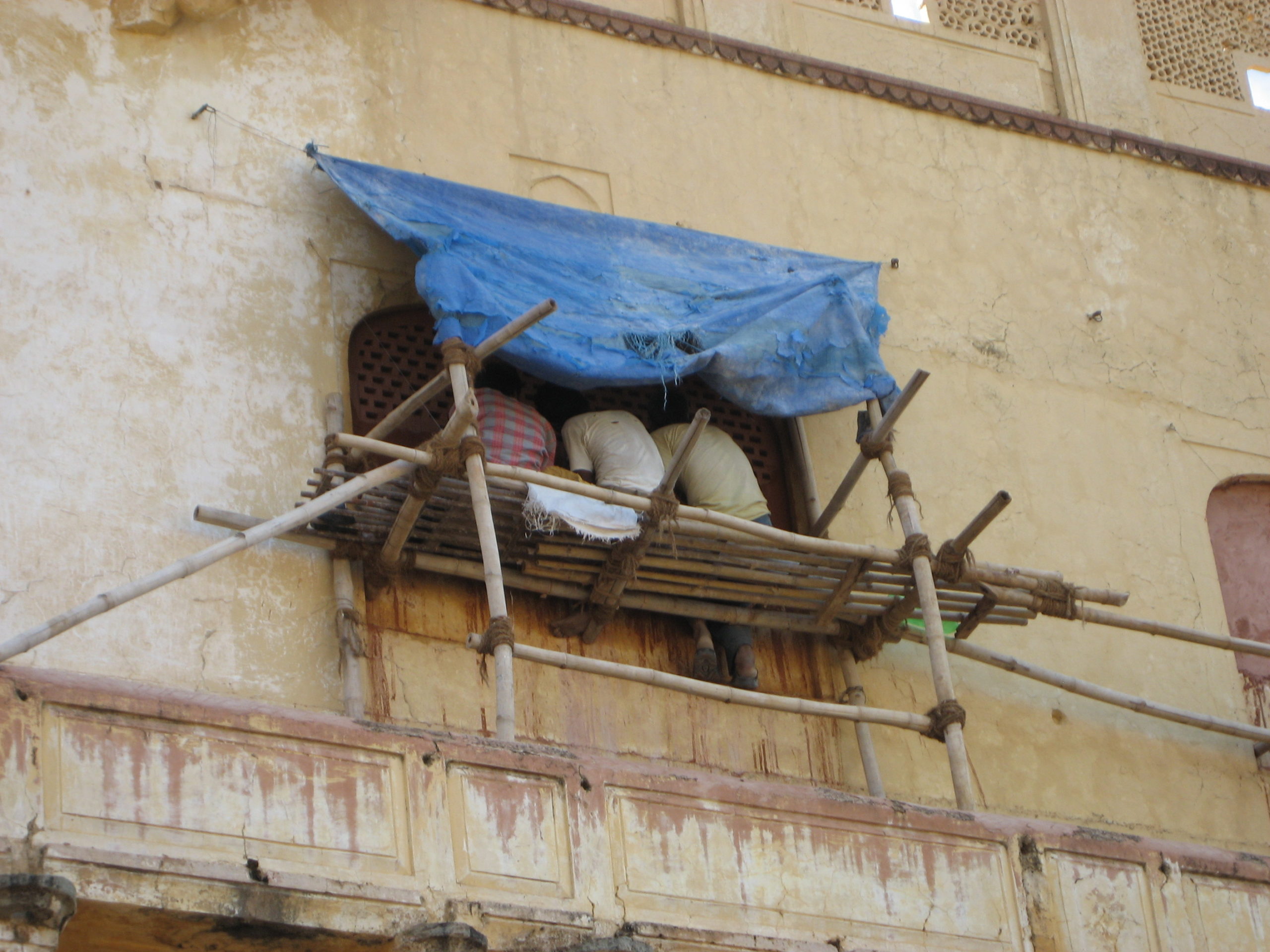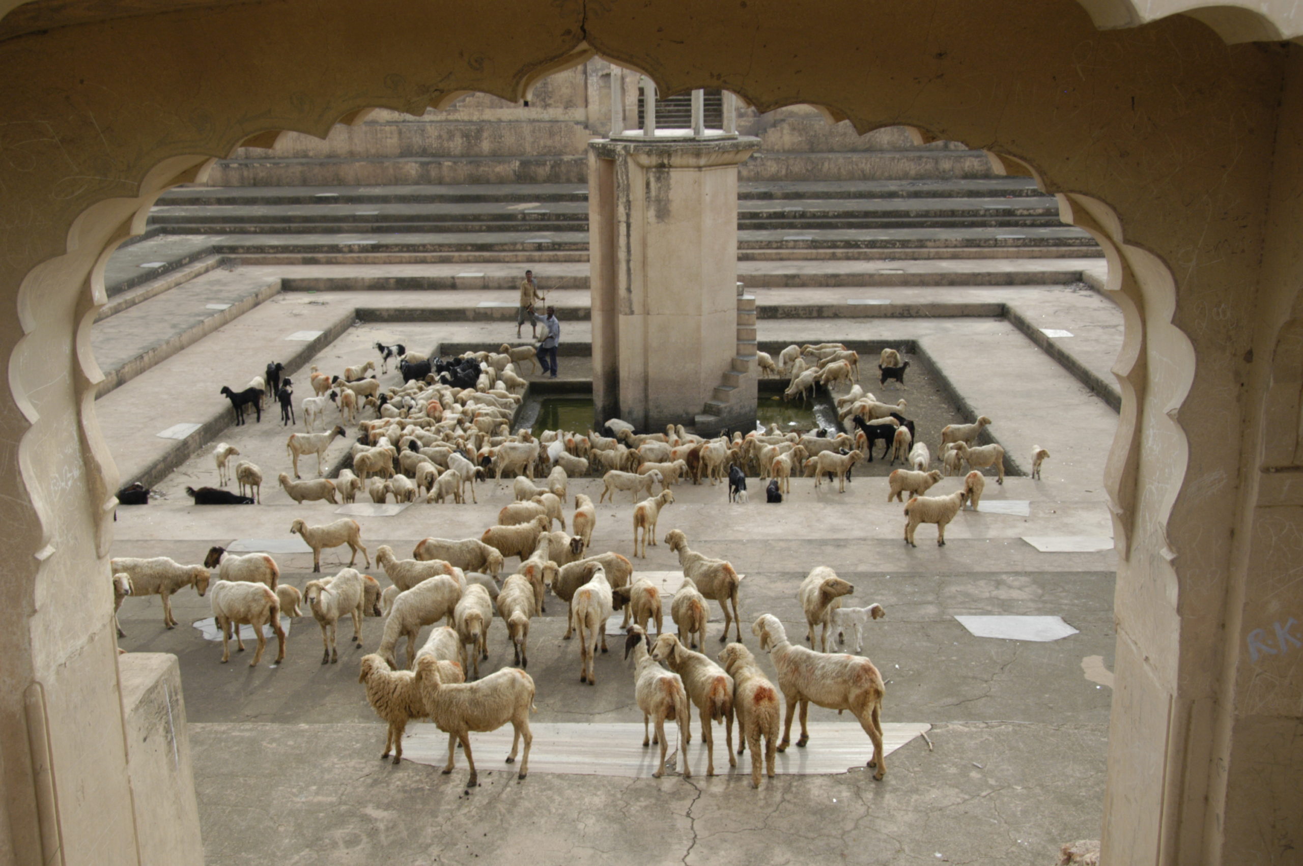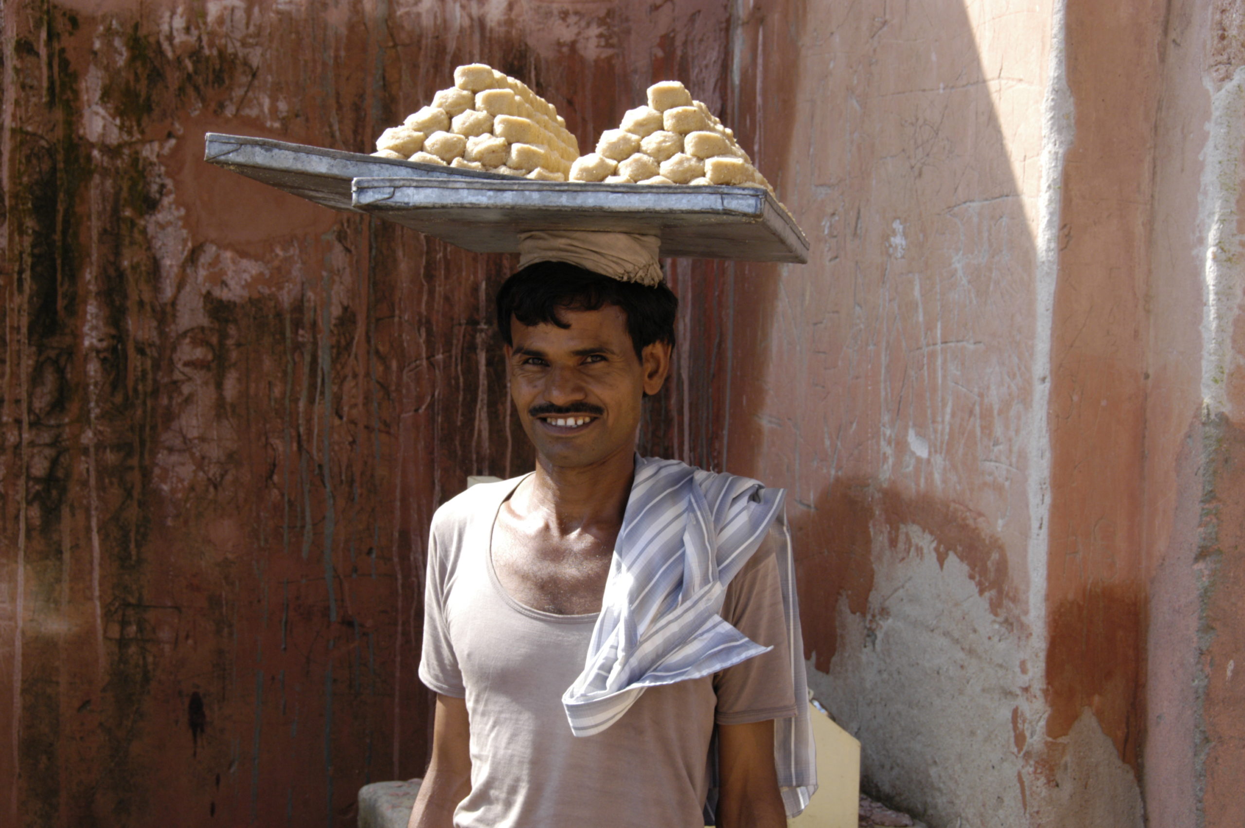 Vorbei an der kleinen Stadt Pushkar mit seinen Ghats am See, wo wir uns den Segen eines Sadu holten, ging es weiter in die Hauptstadt Rajasthans, Jaipur, die „Rosa Stadt“. Dort warteten das alte astronomische Observatorium aus dem 18. Jh. gleich hinter dem „Palast der Winde“ – ebenfalls Teil des Stadtpalasts. Den Aufstieg zum Fort Amber erledigten wir zu Fuß.
